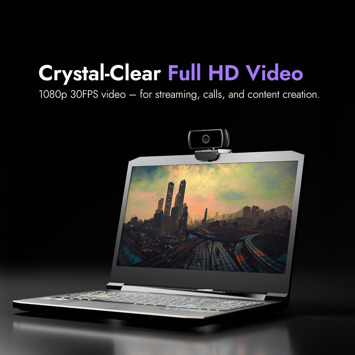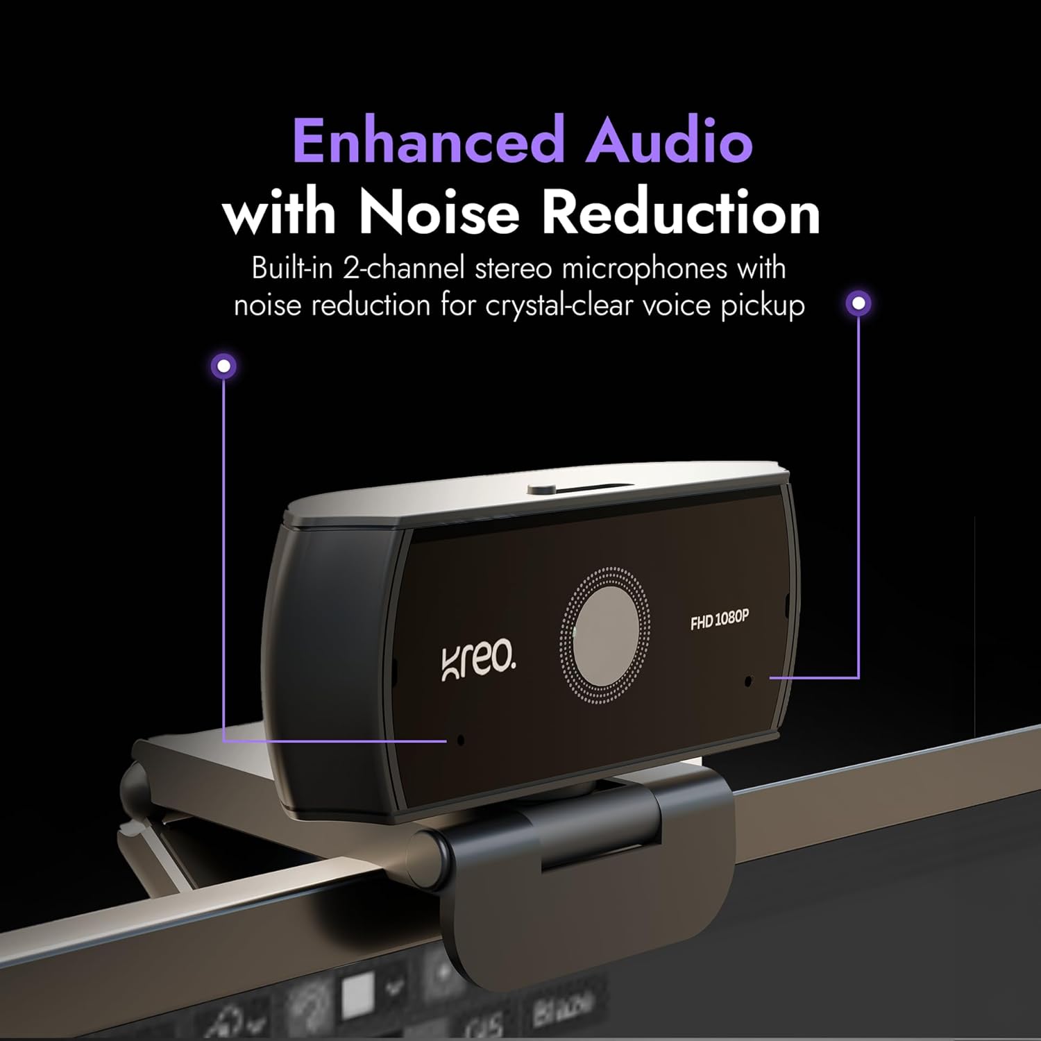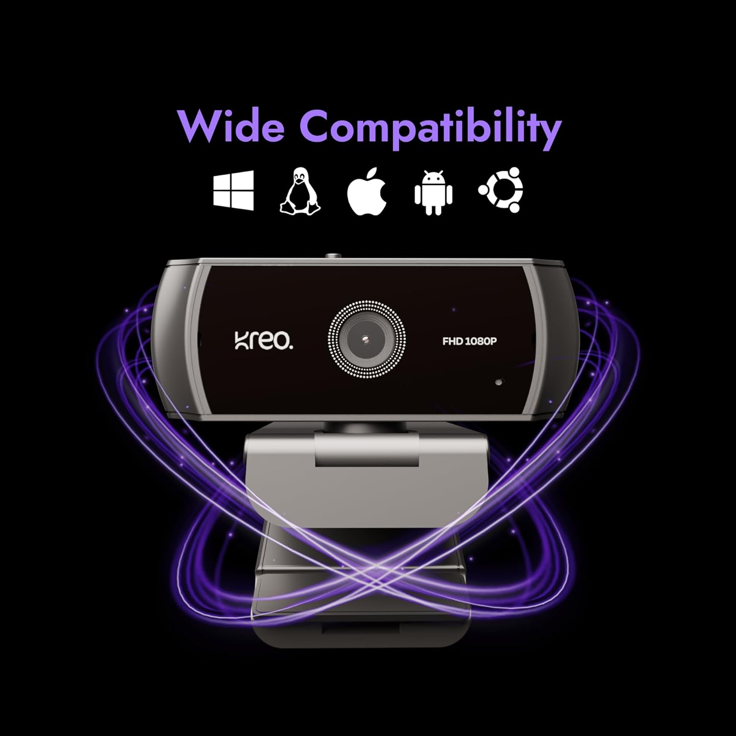 Kreo Owl Full HD Webcam with Auto-Focus and Built-in Dual Digital Mic, Plug and Play Setup for Video Call, Streaming, YouTube and More, Built-in Privacy Shutter with 360 Rotation (Black, Owl Lite)