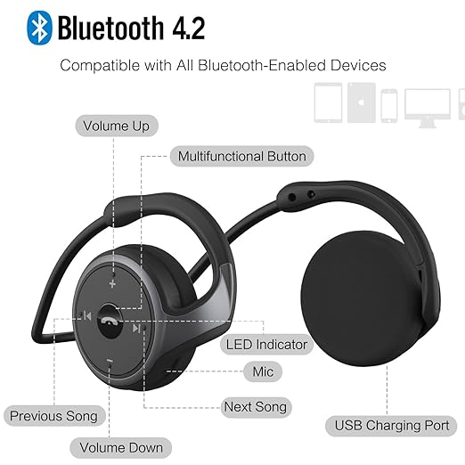 RTUSIA Small Bluetooth On Ear Headphones Wrap Around Head - Sports Wireless Headset with Built in Microphone and Crystal-Clear Sound, Foldable and Carried in The Purse, and 12-Hour Battery Life, Black