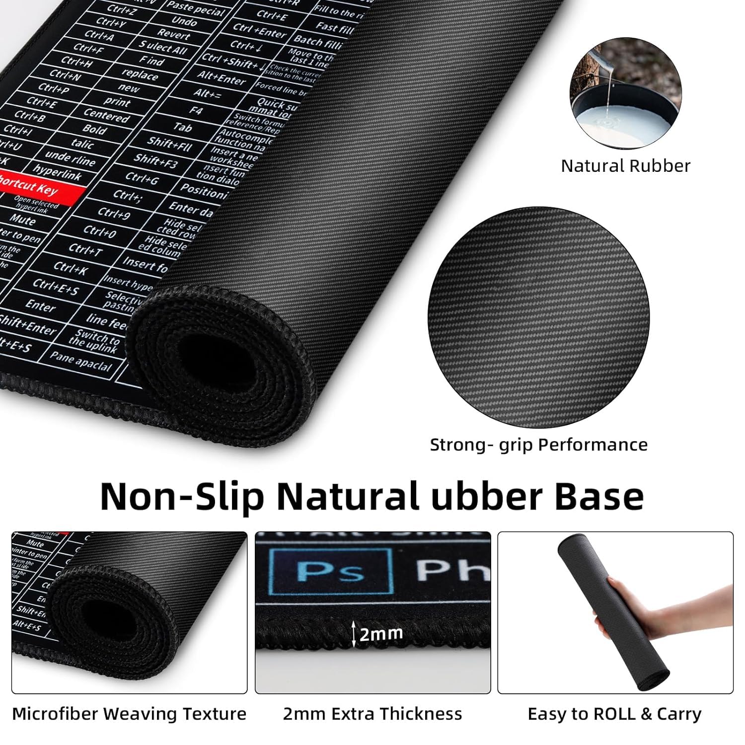 CUBIZ Anti-Slip Keyboard Pad with Office Software Shortcuts Pattern, Clear Extended Large Cheat Sheet Mouse Pad, Large Rubber Base Mice Smooth Cloth Desk Mat, Excel Shortcut Keys Mouse Pad (80x30cm)