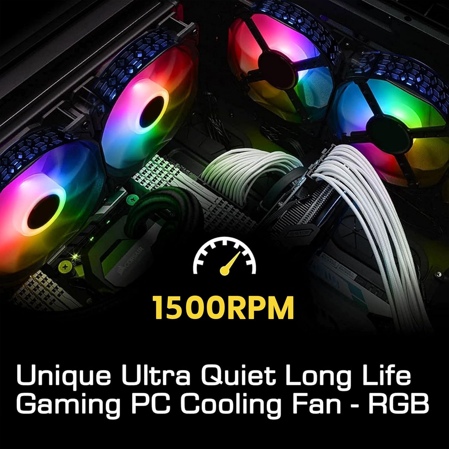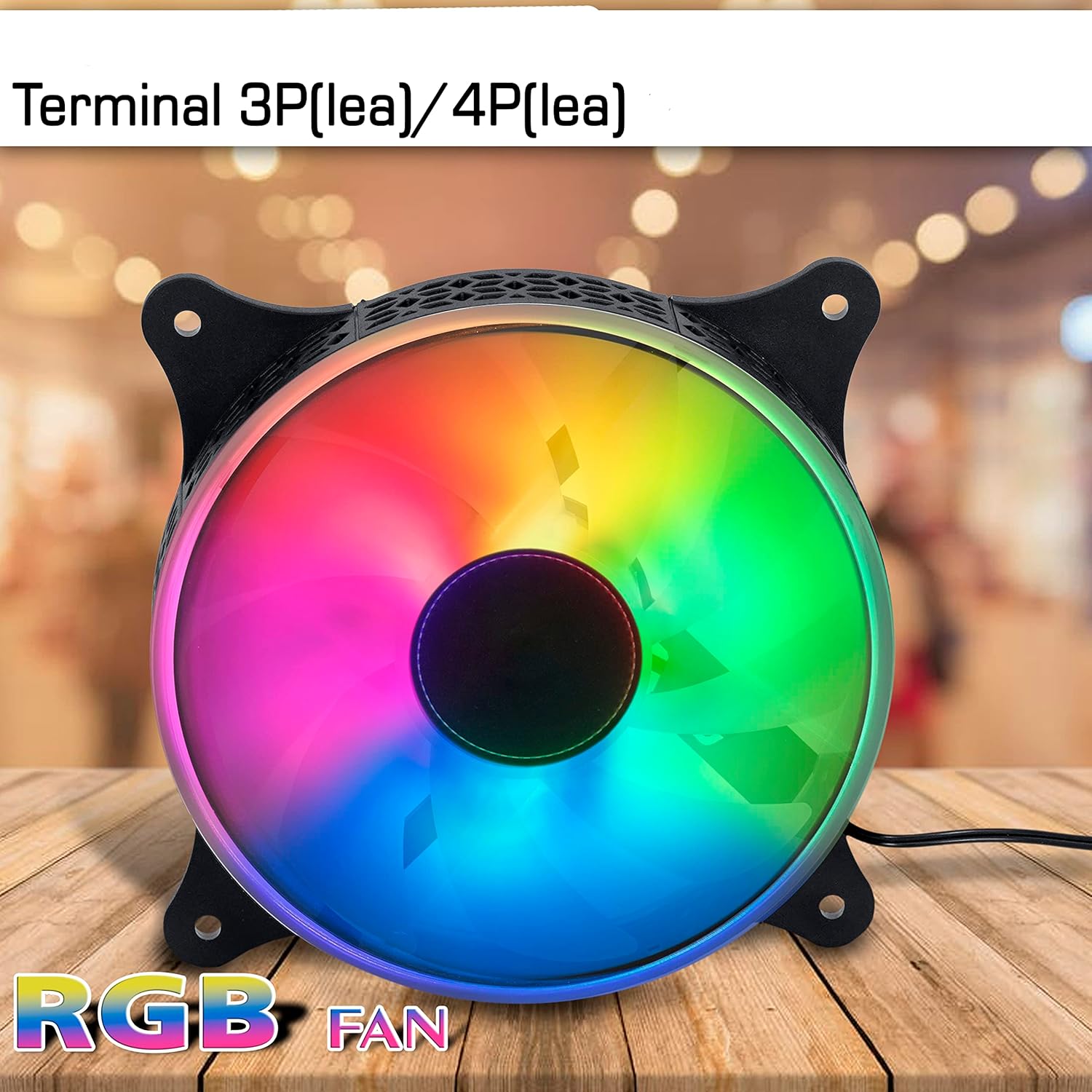 RGB LED CPU Cooling Fan 80mm (High Airflow, Silent Operation, Multi-Color Lighting, 3/4 Pin Connector, Compatible with Desktop PC Cabinet)