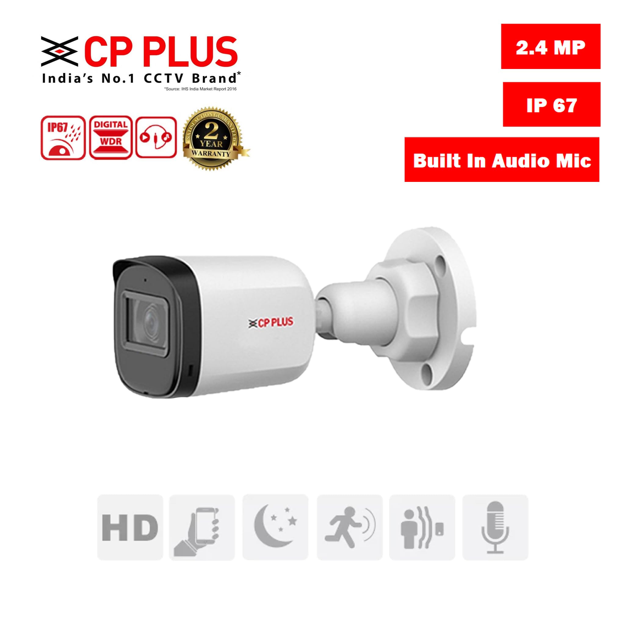 CP Plus 2.4MP IR Bullet Camera (Built-in Mic) – Full HD CCTV Security Camera with Audio, Night Vision & Waterproof Design
