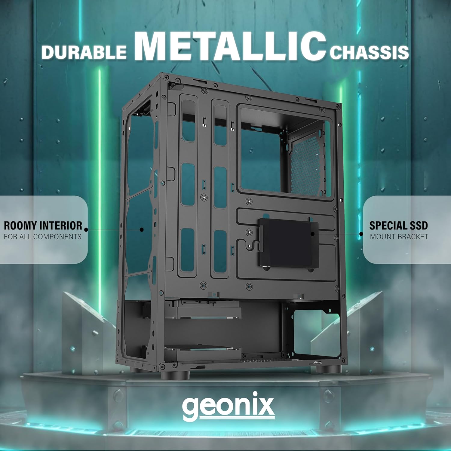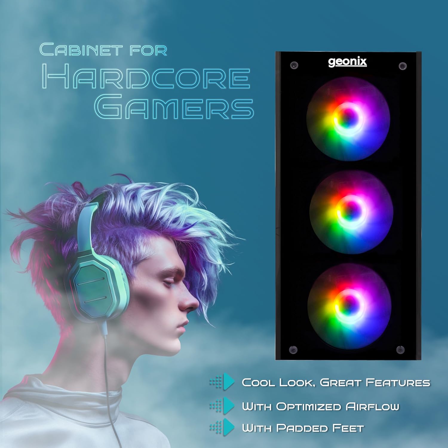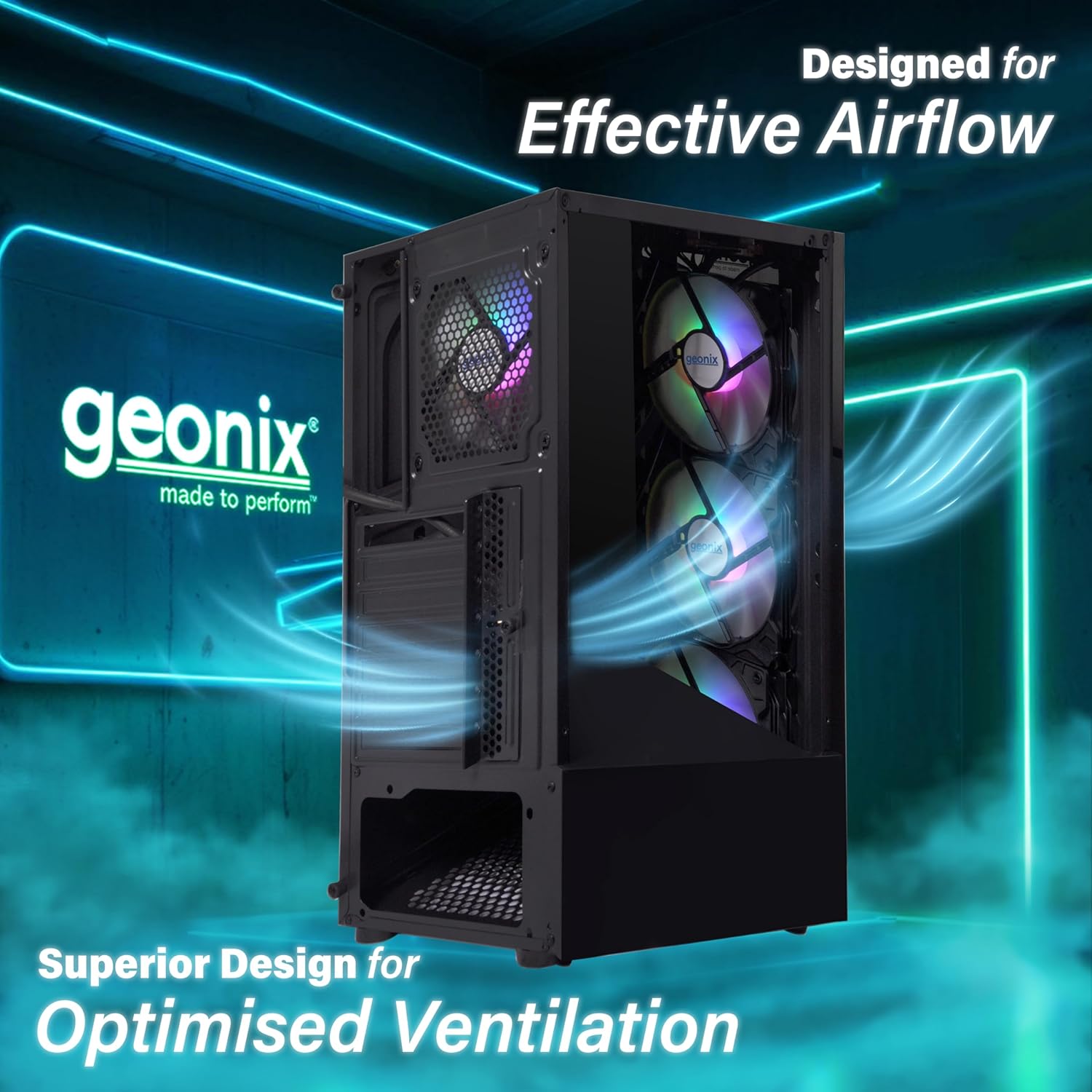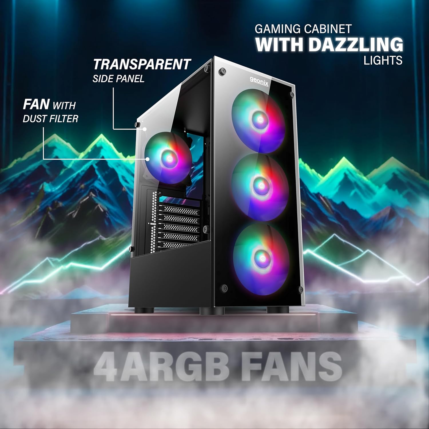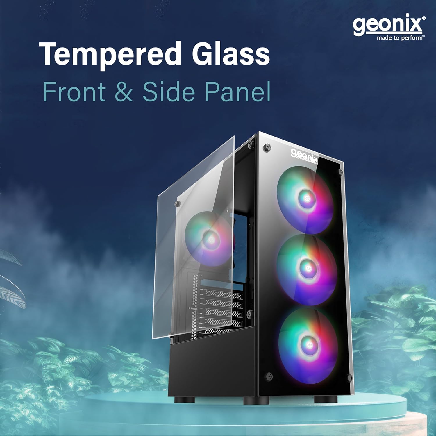 GEONIX Tempered_Glass X20 ATX Gaming Cabinet/Computer Case with 4 RGB Fans, 2 USB 2.0 Slots, USB 3.0 Slot, Ssd Slot, 7 Expansion Pci Sockets (Black)